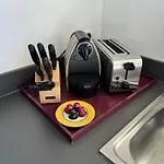 Odalarda balkon, kanepe, oturma alanı gibi olanakların yanı sıra duş kabini, ayrı tuvalet ile 1 banyo odası vardır.